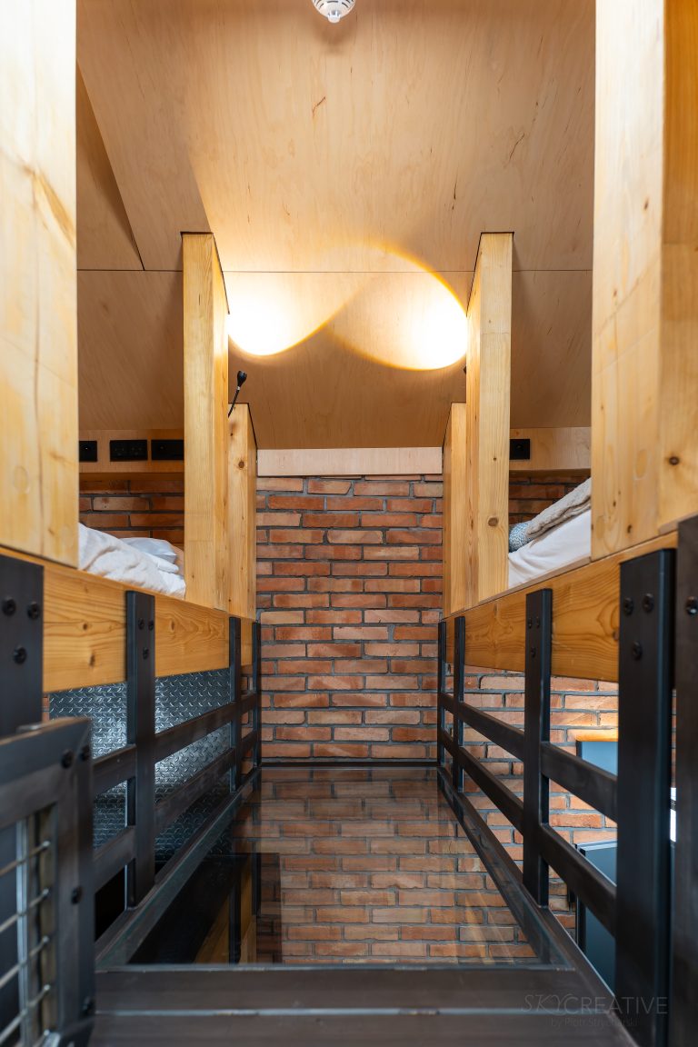 Głównym atutem pokoju jest możliwość podziwiania gwiaździstego nieba lub porannego światła bezpośrednio z antresoli, na której znajduje się komfortowe łóżko. Panoramiczne okno dachowe oferuje niesamowite widoki i wprowadza do wnętrza mnóstwo naturalnego światła, tworząc przytulną atmosferę.